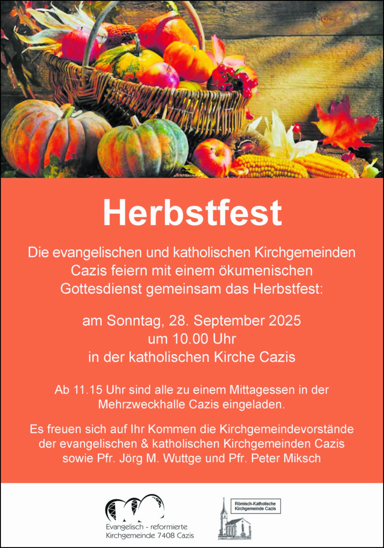Sonntag, 28 Sept. 2025, 10 Uhr, Kath. Kirche Cazis