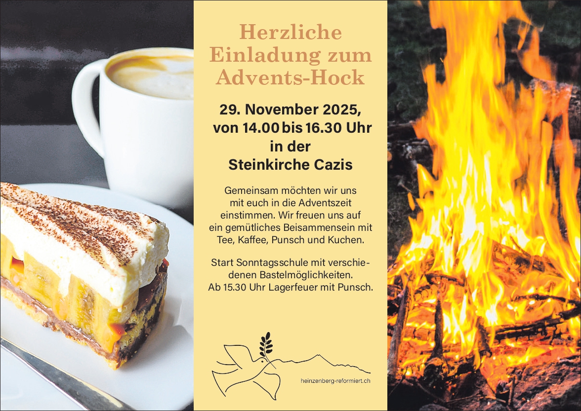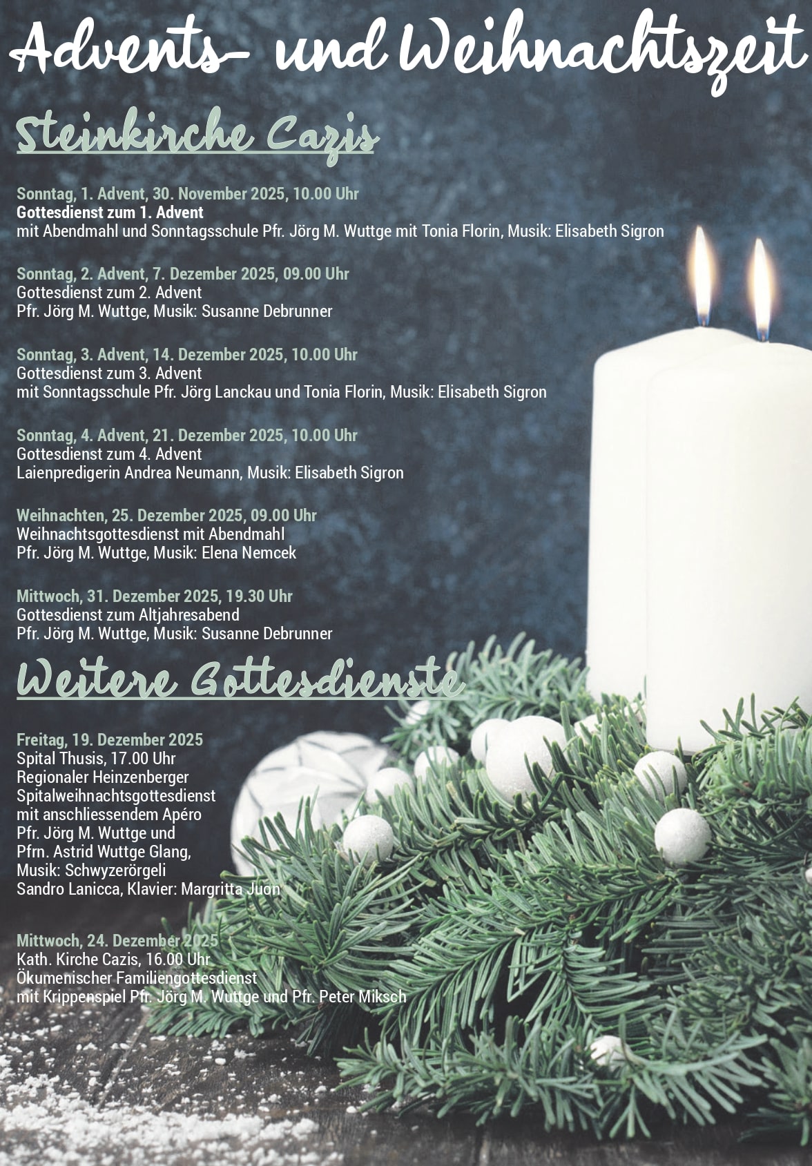 Samstag, 29. Nov. 2025, 14-16.30 Uhr, Steinkirche Cazis
